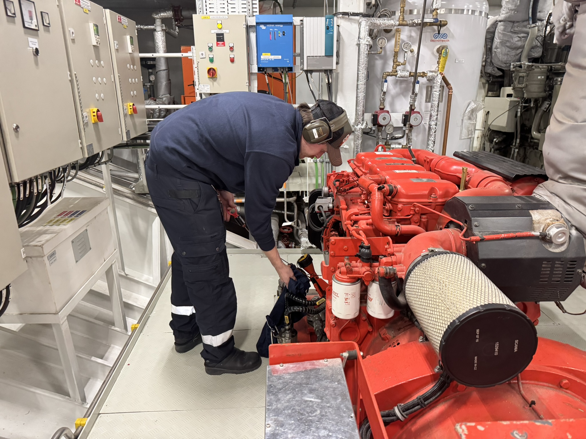 Hverdagen om bord styres av vedlikeholdssystemet Premaster, som gir oversikt over dagens oppgaver. Batteriene kontrolleres nøye, og rutiner følges for å sikre stabil drift.